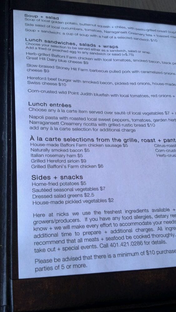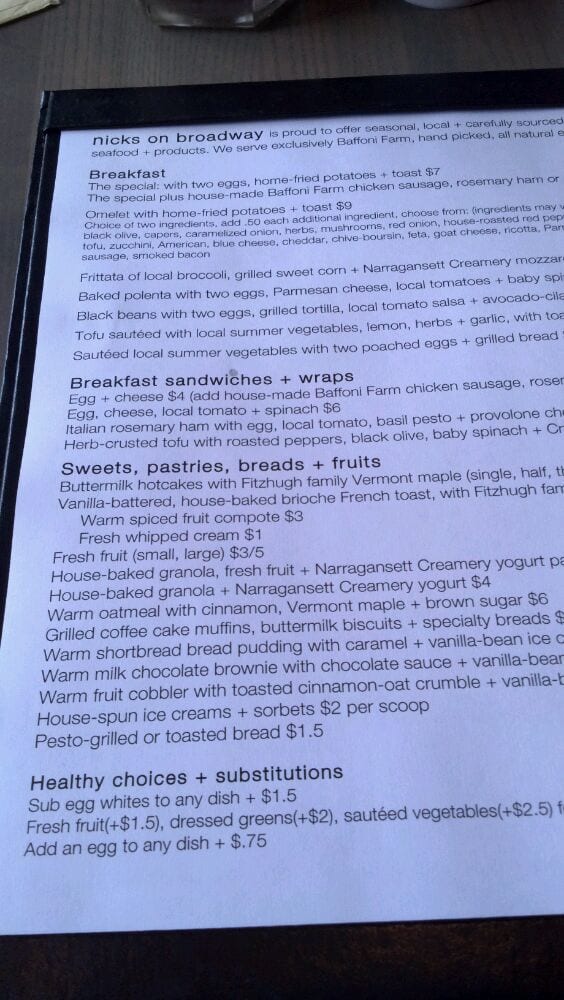 Nicks On Broadway Menu (2025 Update)
